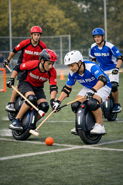 El roda polo o polo electrico o polo sobre ruedas es un deporte moderno que consiste en jugar golpeando una bola con un stick o taco mientras se desplaza el jugador en un monociclo eléctrico. Se juega con dos equipos y tiene unas reglas relativamente parecidas a las de polo tradicional que se practica montado en caballo.